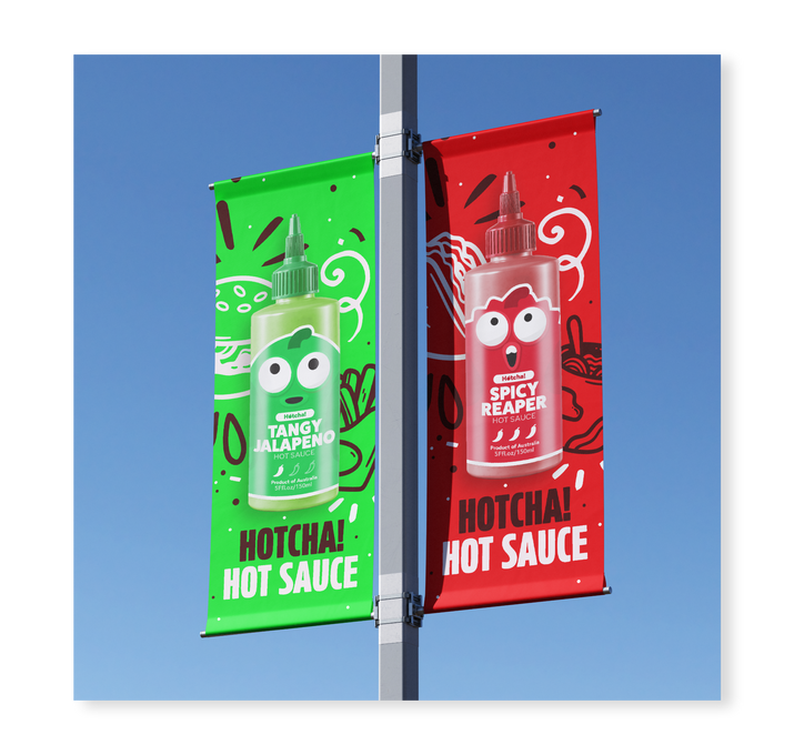 Hotcha! breaks away from intense, brooding hot sauce branding with something loud, colorful, and fun. Expressive pepper characters, bold typography, and vivid palettes bring an approachable energy to the spice world. It captures heat without taking itself too seriously. A fiery brand with serious personality.